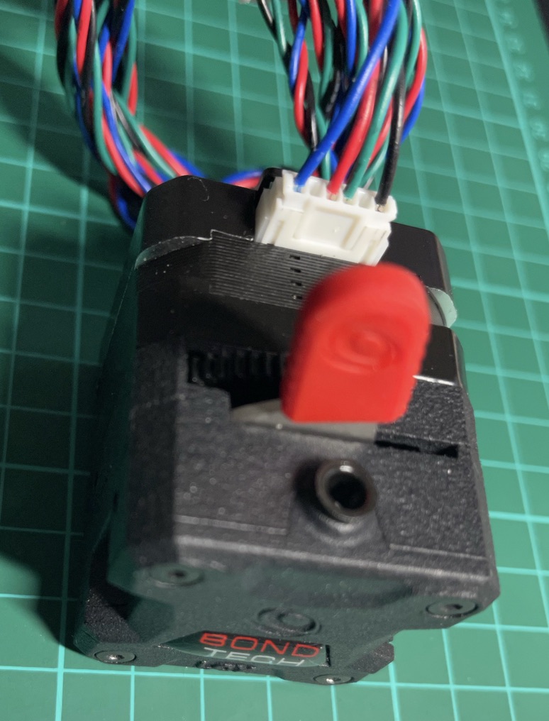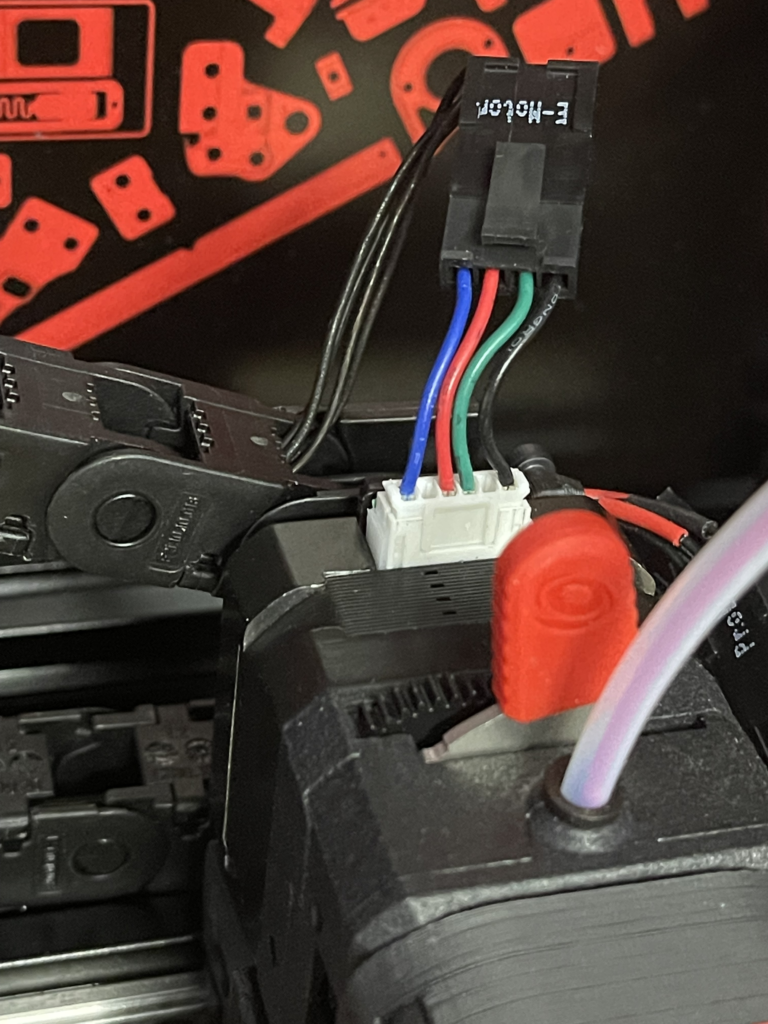 Da ich den Fermio Kabelbaum benutze, habe ich die Kabel, welche bei den A/B (Gantry) Motoren dabei sind, nicht benutzt. Da diese die richtigen Stecker haben, habe ich eins davon benutzt, um einen Adapter Kabel zum Stecker des Fermio Kabelbaums zu machen. Die Farben sind die gleichen, wie an dem normalen Extruder Motor.