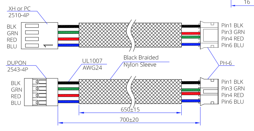 Dazu habe ich das nicht benutzte Motor Kabel auf 2-3cm gekürzt und einen Molex MicroFit 3.0 Stecker mit 4 Polen an das andere Ende montiert.