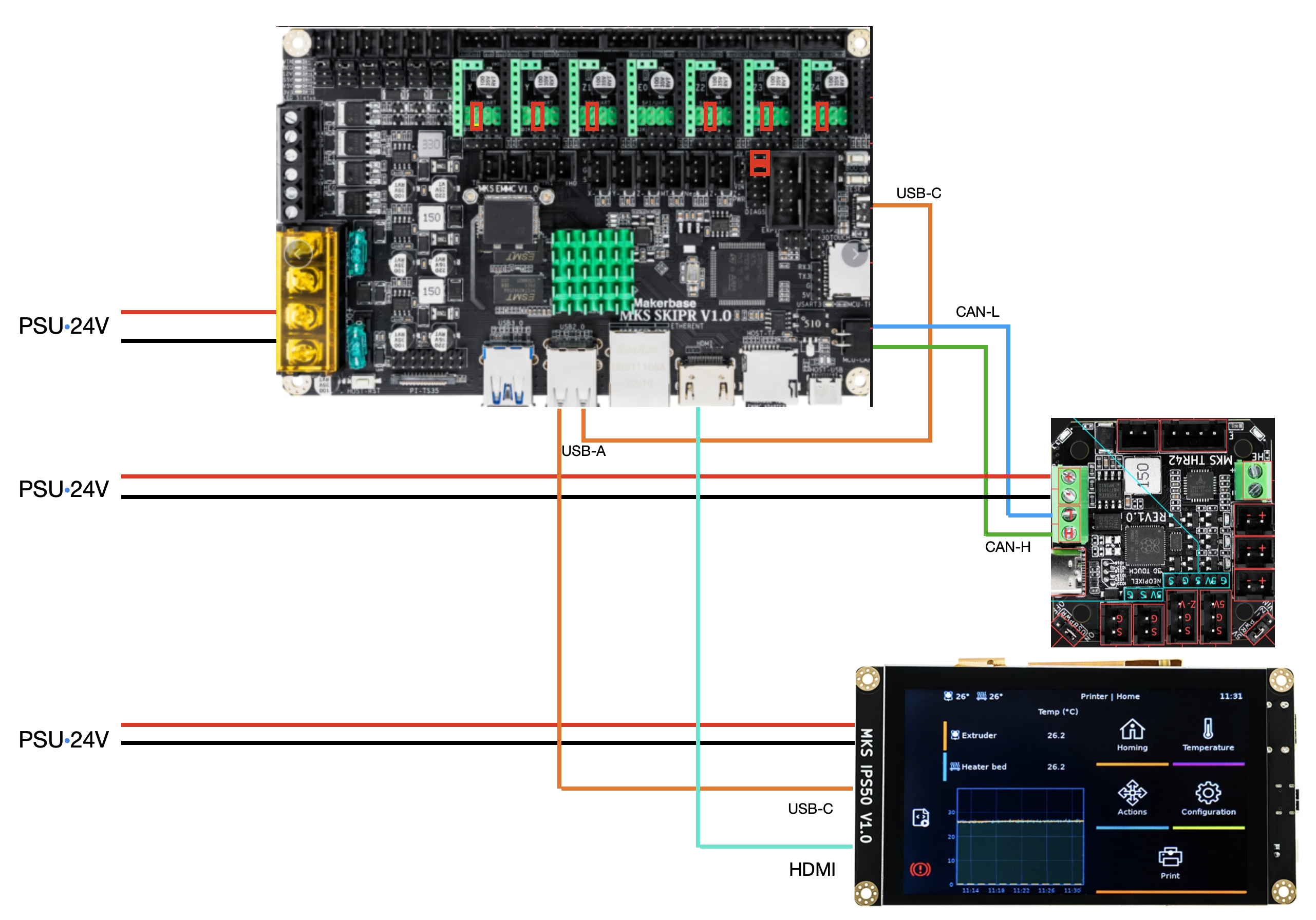 The THR must connected via USB cable to the SKIPR.